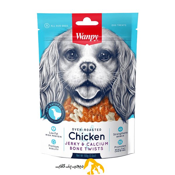 تشویقی سگ ونپی مدل chicken jerky & calcium bone twists وزن 100 گرم