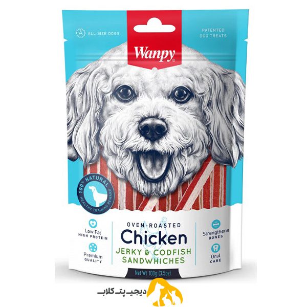 تشویقی سگ ونپی مدل chicken jerky & codfish sandwich